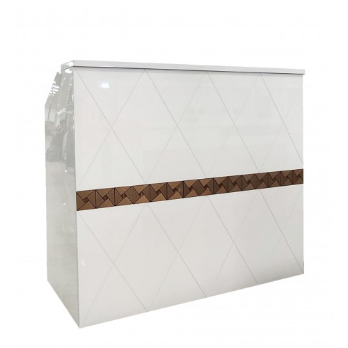 Este recibidor fabricado en melamina de calidad presenta un diseño moderno y elegante, ideal para recepciones en oficinas, salones de belleza o negocios en general.